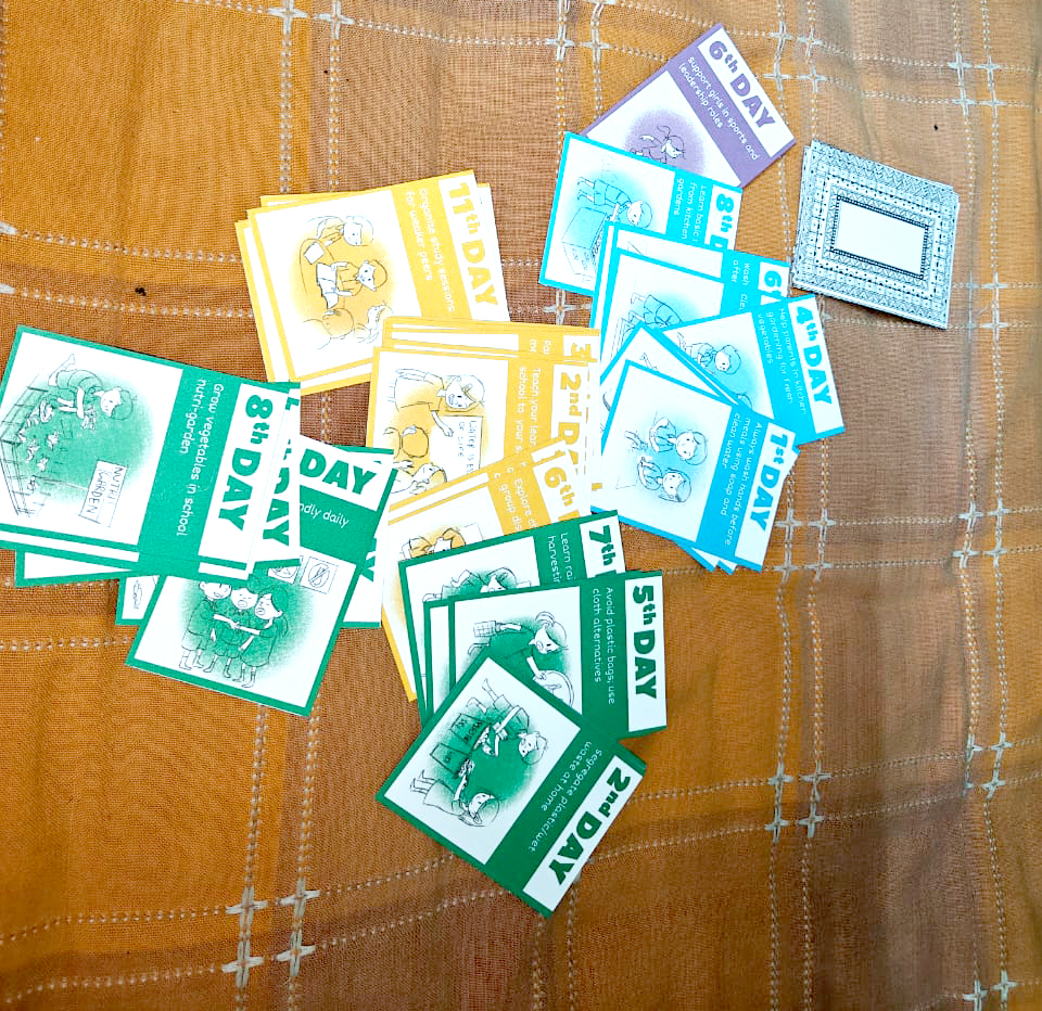 One Step Every Day is a card game developed for rural children aged 12–16 years. The purpose of the game is to motivate and educate children on various social topics. The four colors (or suits) of the card game correspond to four segments of the social diaspora: